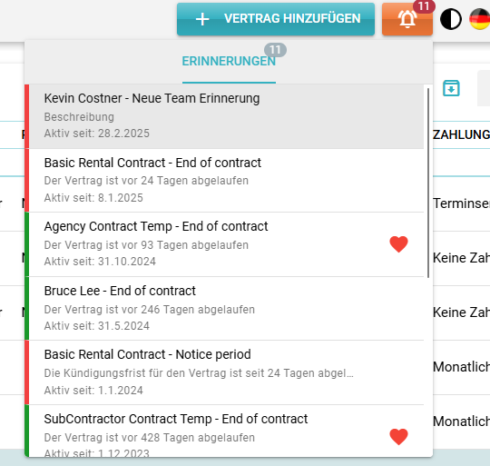 • Vertragsablauf : Diese Erinnerung wird 30 Tage vor dem Enddatum eines Vertrags gesendet.